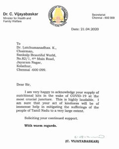 3.Total mask received 14000.Provided 3000 3 ply mask to Cancer Institute, Adyar , Chennai ,1200 mask to Anandam old age home, 200 mask to Child trust hospital , 2000 mask to police department at Ranipet district, 800 mask to MMM hospital and 5800 mask to Cancer patients and cancer winners. Supported by donors HUL , Drums Food International Pvt ltd and Surgiwear medcare.