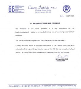 The beneficiary of your contribution is the Cancer Institute (WAI) in Chennai.